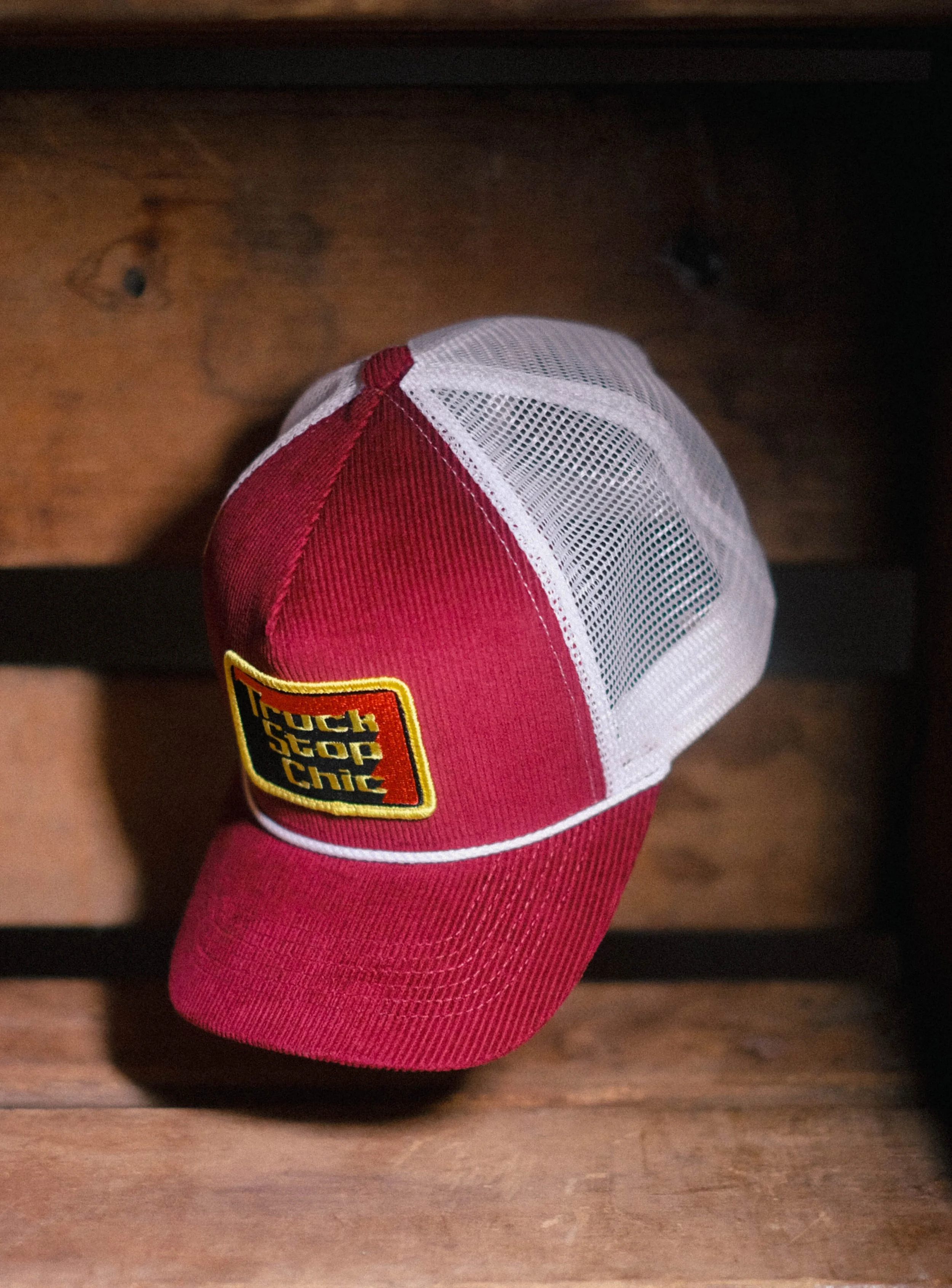 Maroon cord on white mesh Truck Stop Chic trucker hat